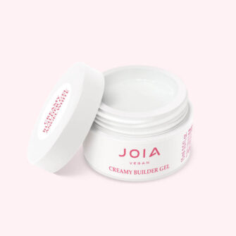 - Fixez la forme (si nécessaire), appliquez le gel crémeux de construction UV/LED JOIA vegan, en créant la forme et la longueur souhaitées. Polymérisez 60 secondes sous une lampe LED.