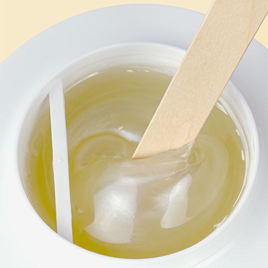 Après avoir fait fondre la cire dans le chauffe-cire, vérifiez la température sur votre poignet et sur celui de votre cliente. Examinez la direction de la pousse des poils. 2. À l'aide d'une spatule en bois jetable, appliquez une fine couche de cire dans le sens de la pousse des poils. Prenez une bande de coton non tissé et repliez l'une de ses extrémités pour une meilleure prise lors de l'épilation. Appliquez-la sur la zone recouverte de cire et lissez-la. En tenant la peau, tirez rapidement la bande parallèlement à la zone épilée et dans le sens inverse de la pousse des poils. dans le sens inverse de la pousse du poil.